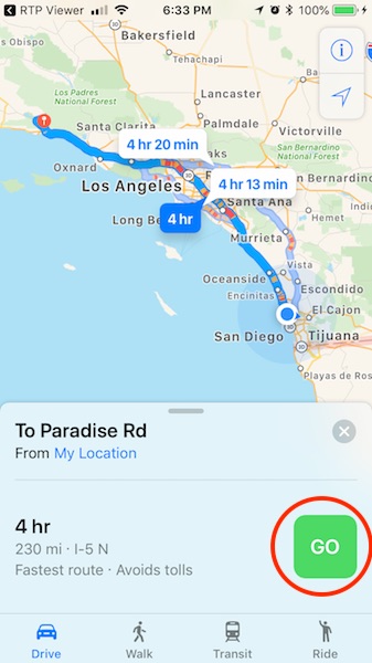 Road Trip Planner is not a navigation-by-voice app, but it’s easy to obtain navigation in a few simple steps as described below.