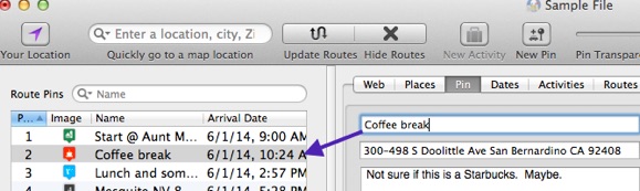 When you first create a route or POI pin, its name is the same as the pin’s location or address. To change the name to something more meaningful, enter a name in the Name field under the Pin tab as shown below.